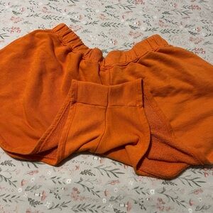 Bright orange shorts for active wear. Comfortable and stylish design. Ideal for workouts. Soft fabric inside looks like terry material. Stitched logo. No piling.