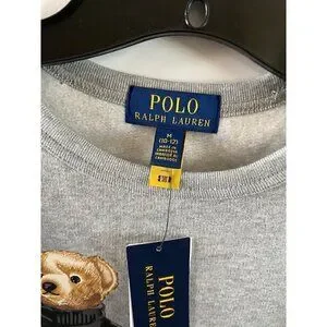 Polo Ralph Lauren Christmas Tree Bear Sweatshirt Medium 10-12 Gray Ships Today!