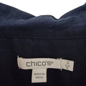 Chico’s Size 3 (US 16) Navy Blue Linen Tiered Midi Dress with Pockets, Like New