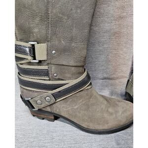Sorel Womens Lolla Tall Boots US 8 Grey Leather Zip Belted Waterproof Boots
