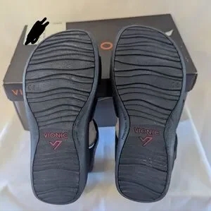 Vionic Tami Pacific Black Metallic Sandals Women's 5 Wide New