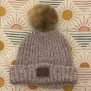 Love Your Melon Tan Knit Beanie with Pom-Pom