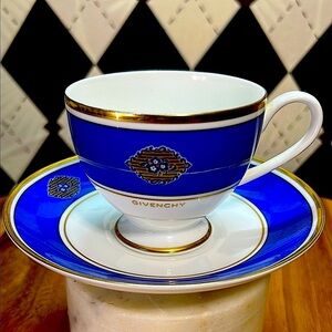 Vintage Givenchy Blue & White Cup & Saucer Set by Yamaka – Timeless Elegance