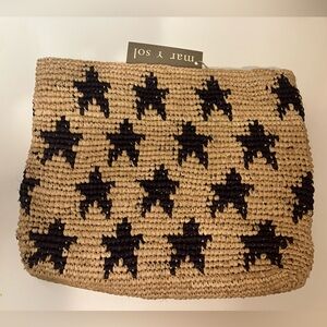 Mar Y Sol NWT Estrella Clutch Crocheted Raffia Bag Navy Star