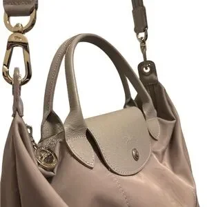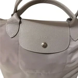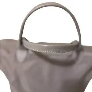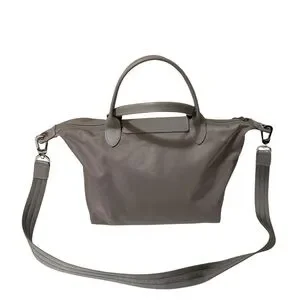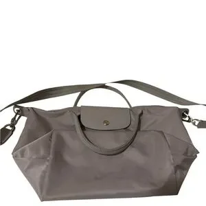 Longchamp Shoulder Grey Nylon Silver-Tone Hardware Flat Handles & Single Adjustable Shoulder Strap Leather Trim Embellishment Unlined & Dual Interior Pockets Zip Closure at Top & Snap Stylish gray tote by Longchamp. Perfect for daily use. Features a sleek design. Overall, in good condition. Please check all the pictures closely; you might see a little sign of wear around the bottom of the bag