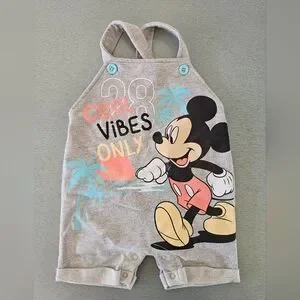 Disney Baby Mickey Mouse Gray Romper 12M Cool Vibes Only Summer Outfit