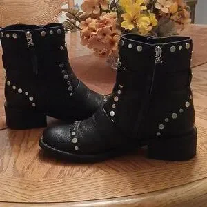 Chic black leather boots with bold stud accents. Perfect for a stylish edge. Perfect condition. All studs intact.