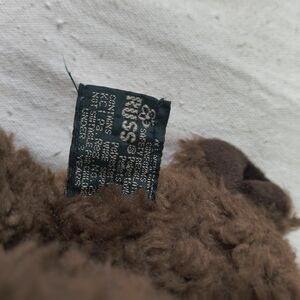 Charming brown moose plush with a cozy red plaid scarf. Soft and cuddly for kids.