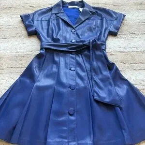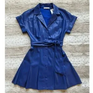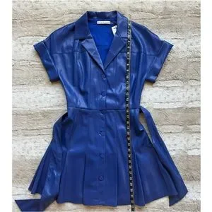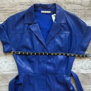 Alice + Olivia Shirley Faux-Leather Mini Shirtdress in Royal Size 2