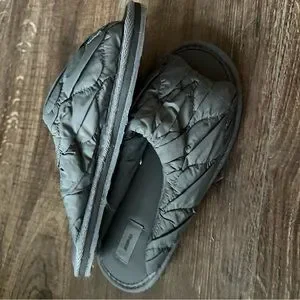 Comfortable quilted slide slippers in dark gray. Size 37. Excellent condition.