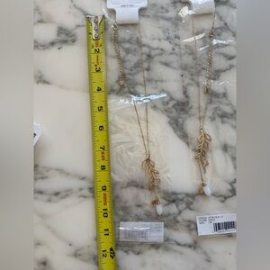 NWT Bansri Gold Plated Leaf Pendant Necklace – White Quartz Drop & Initial Charm (C, E, M, N)