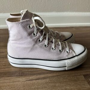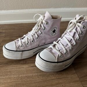 Step out in style with these Converse women's high-top sneakers. Featuring a chic light purple/lavender color, these shoes offer both comfort and fashion. Perfect for casual outings.