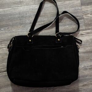 This elegant black suede like tote bag is perfect for any occasion. Its sleek design and versatile color make it a must-have accessory.