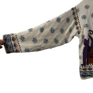 Icelandic Designs Whimsical Cats Colorful Full Zip Cardigan Sweater Size Medium