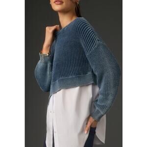 Anthropologie Pilcro Asymmetrical Twofer Blue Chunky Layered Sweater Top Large