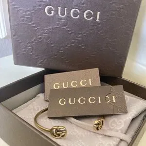 ❤️❤️❤️ DAY SALE!!! Valentine's / Galentine's Sale! Reduced from $250. Open style Gucci bracelet with signature GG monogram on both ends. This style allows bracelet to fit almost any wrist size. Comes with the gucci box, authentication cards and dust bag.