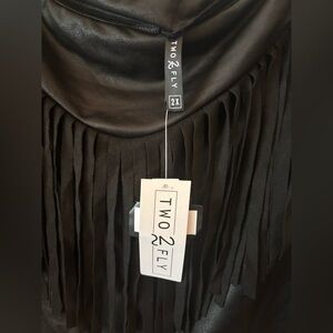 • Style: Fringe faux leather skort