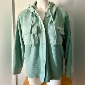 American Eagle Green Hooded Corduroy Button Down Jacket size Small