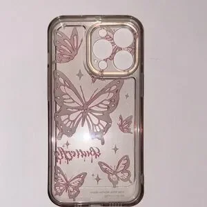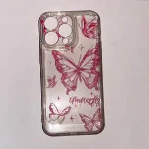 Enhance your phone with this stylish butterfly design case. The pink accents add a touch of elegance, making it a perfect accessory for your device. For iPhone 13 Pro