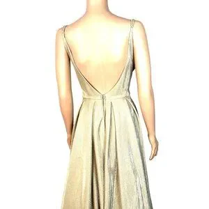 Metallic Gold Evening Gown By B. Smart With Plunging Back V-Neckline Adjustable