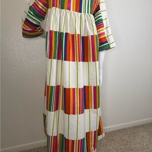 1970s Marimekko Liidokki Rainbow Striped Kaftan Dress Vintage Size small