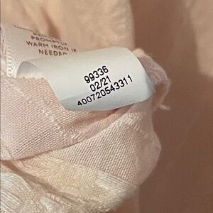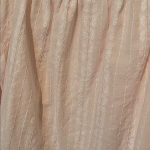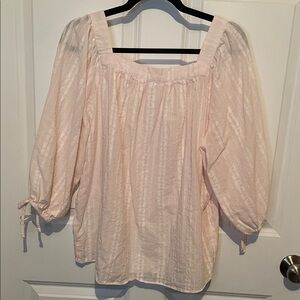 Chic blouse with square neckline. Features puff sleeves and subtle floral stripe pattern. Beautiful light pink color with three-quarter length sleeves. Ideal for versatile styling. Excellent used condition.