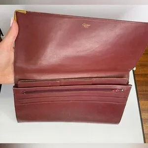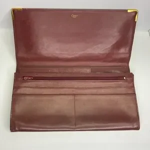 Vintage Cartier burgundy leather wallet. Includes multiple dividers for organization.