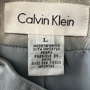 Calvin Klein Women’s 100% leather side pockets hook and eye fastening silver jacket size L. Excellent condition.