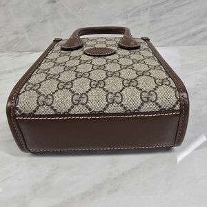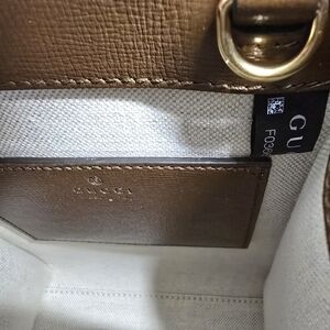 Stylish Gucci tote with iconic monogram pattern. Features brown leather accents. Brand new with dust bag.