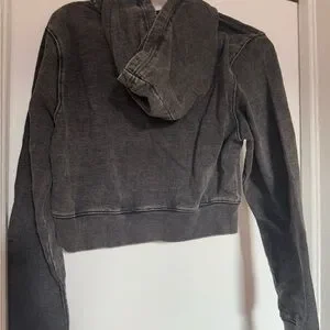 Good American Charcoal Cropped Hoodie Jacket