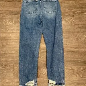 Such a comfortable pair of high rise jeans! No zipper all buttons which is a nice stylistic touch! Cute rips on the backside of the ankles