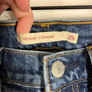 Excellent preowned condition womens size 25 straight leg jean called the Wedgie Straight. The cheekiest jeans in your closet. Inspired by vintage Levi's® jeans. Special construction lifts backside. Iconic leather patch at back waist. Cut-off hem.