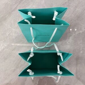 New without tags, came with purchase and were never used - NWOT Tiffany & Co Small Paper Jewelry Gift Wrapping Bags Bundle. Comes with two small bags. Colors: Tiffany blue, white, and black.