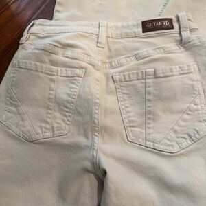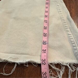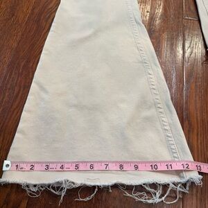 Stylish cream flare jeans.l with raw hem. Features a flattering high waist and wide leg flare bottom design. Perfect for casual wear. Great used condition. No flaws.