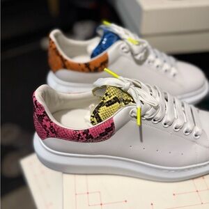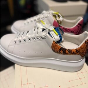 Alexander McQueen White Sneakers with Snakeskin Accents