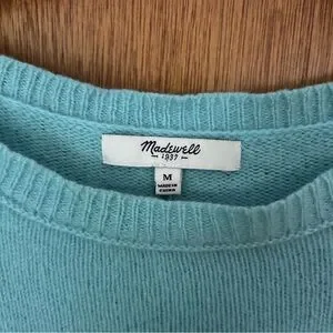 Madewell sky blue 100% merino wool boat neck sweater. Lightweight, but still cozy and warm. Very light stain on one of the cuffs, hardly noticeable.