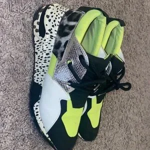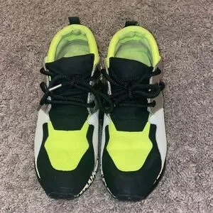 Vibrant neon green and black sneakers. Stylish and comfortable for everyday wear.