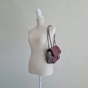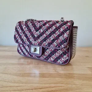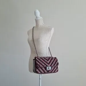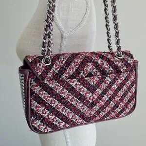 tags luxury designer boucle tweed twill chain burgundy mauve flap top handbag shoulder bag classy