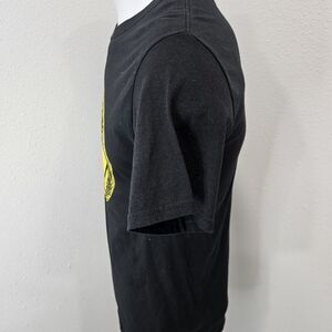 Nightmare Before Christmas Jack Skellington graphic t-shirt. This men's regular size small shirt features short sleeves and a black color. Show off your love for the iconic character with this festive Christmas themed shirt. Perfect for fans of the classic movie, this t-shirt is a must-have for your wardrobe.