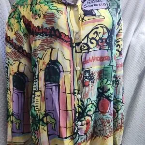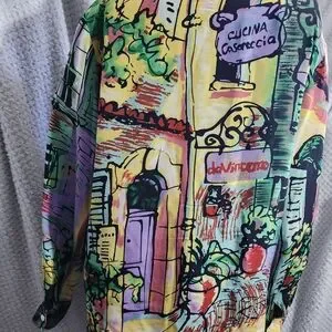 Elevate your style with this vibrant button-down shirt featuring a unique graphic design. Perfect for adding a splash of color to your wardrobe.