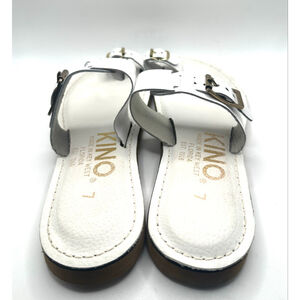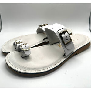 Kino White Leather sandals Sz 7 women's silver Buckle Toe Ring Sandals