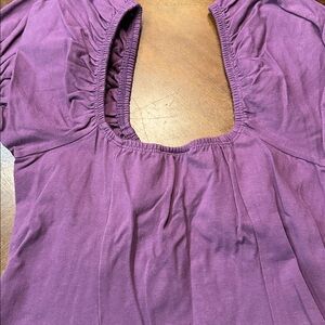 Chic purple top with gathered neckline and puff sleeves. Perfect for any occasion. Washed but never worn.
