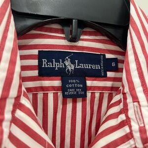 Vintage Ralph Lauren Women's Red/White Striped Shirt size 6