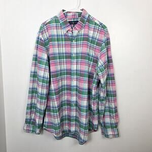 Ralph Lauren White Pink Green Gingham Camisa Oxford Button Up Shirt Size XL