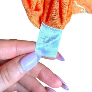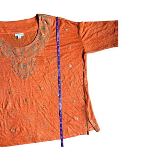 J. Jill Love Linen Shirt Blouse Top Sz Medium Orange Embroidered Sequin Boho
