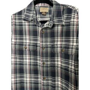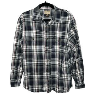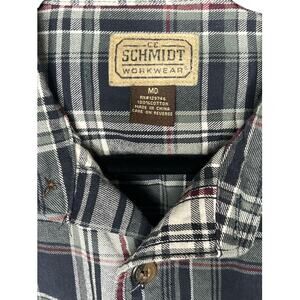CE SCHMIDT Shirt Mens Medium Blue Green Plaid Button Up Heavy Cotton Workwear