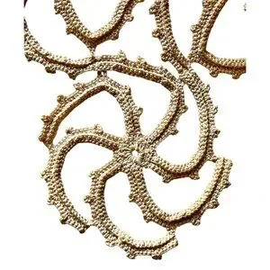 This intricately tatted tan centerpiece doily features a unique pinwheel pattern, adding elegance to any table setting. Measuring 19 inches by 12 inches, it's crafted to enhance your decor with a sophisticated touch. Perfect for creating a refined atmosphere in dining or living areas.