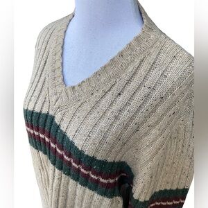 This is a preowned vintage piece in very good condition. See all pics. Oatmeal color with dark green and burgundy stripe.