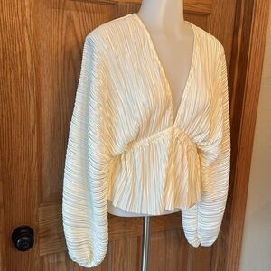 LULUS Radiant Flirt Ivory Satin Plisse Long Sleeve Top
