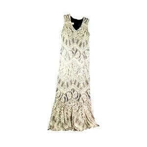 Vtg DAMIANOU Dress Gold Crochet Lace Overlay Black Sz Small Long Sparkly